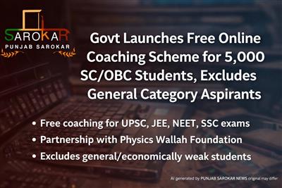 ਕੇਂਦਰ ਸਰਕਾਰ ਦੇ Ministry of Social Justice and Empowerment ਨੇ SC ਅਤੇ OBC ਵਰਗਾਂ ਦੇ 5,000 ਵਿਦਿਆਰਥੀਆਂ ਲਈ ਮੁਕਾਬਲਾਤੀ ਪ੍ਰੀਖਿਆਵਾਂ ਦੀ ਤਿਆਰੀ ਵਾਸਤੇ ਮੁਫ਼ਤ ਆਨਲਾਈਨ ਕੋਚਿੰਗ ਸ਼ੁਰੂ ਕੀਤੀ ਹੈ। Physics Wallah Foundation ਨਾਲ ਸਾਂਝ ਰਾਹੀਂ ਚੱਲ ਰਹੀ ਇਸ ਯੋਜਨਾ ‘ਚ ਜਨਰਲ ਵਰਗ ਦੇ ਬਾਹਰ ਰਹਿਣ ‘ਤੇ ਨਵੀਂ ਚਰਚਾ ਛਿੜ ਗਈ ਹੈ।