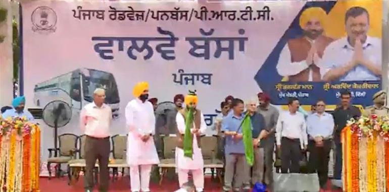 ਜਲੰਧਰ : ਭਗਵੰਤ ਮਾਨ ਸਰਕਾਰ ਨੇ ਜਲੰਧਰ ਤੋਂ ਦਿੱਲੀ ਏਅਰਪੋਰਟ ਲਈ ਵੋਲਵੋ ਬੱਸ ਸੇਵਾ ਸ਼ੁਰੂ ਕਰ ਦਿੱਤੀ ਹੈ। ਦਿੱਲੀ ਦੇ ਮੁੱਖ ਮੰਤਰੀ ਅਰਵਿੰਦ ਕੇਜਰੀਵਾਲ ਅਤੇ ਪੰਜਾਬ ਦੇ ਮੁੱਖ ਮੰਤਰੀ ਭਗਵੰਤ ਮਾਨ ਨੇ ਨਵੀਂ ਦਿੱਲੀ ਹਵਾਈ ਅੱਡੇ ਲਈ ਬੱਸ ਨੂੰ ਹਰੀ ਝੰਡੀ ਦੇ ਕੇ ਰਵਾਨਾ ਕੀਤਾ। ਦਿੱਲੀ ਹਵਾਈ ਅੱਡੇ ਨੂੰ ਜਾਣ ਵਾਲੀਆਂ ਇਨ੍ਹਾਂ ਬੱਸਾਂ ਦਾ ਕਿਰਾਇਆ ਸਿਰਫ਼ 1170 ਰੁਪਏ ਹੈ। ਜੋ ਟਰਮੀਨਲ ਤੋਂ ਇੱਕ ਕਿਲੋਮੀਟਰ ਪਿੱਛੇ ਰੁਕੇਗੀ। ਇਸ ਮੌਕੇ ਕੇਜਰੀਵਾਲ ਅਤੇ ਭਗਵੰਤ ਮਾਨ ਦੇ ਨਾਲ ਪੰਜਾਬ ਦੇ ਟਰਾਂਸਪੋਰਟ ਮੰਤਰੀ ਲਾਲਜੀਤ ਭੁੱਲਰ ਵੀ ਮੌਜੂਦ ਸਨ।