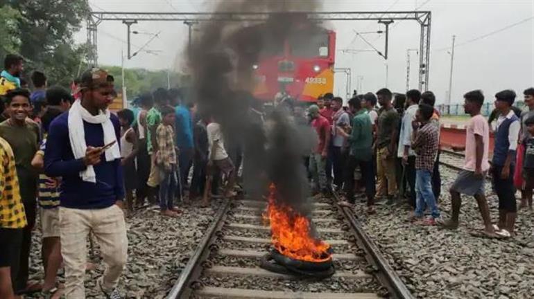 ਨਵੀਂ ਦਿੱਲੀ : ਫ਼ੌਜ `ਚ ਭਰਤੀ ਨੂੰ ਲੈਕੇ ਕੇਂਦਰ ਸਰਕਾਰ ਵੱਲੋਂ ਅਗਨੀਪਥ ਸਕੀਮ ਲਿਆਂਦੀ ਗਈ ਹੈ। ਜਿਸ ਦੇ ਖ਼ਿਲਾਫ਼ ਦੇਸ਼ ਭਰ ਦੇ ਕਈ ਸੂਬਿਆਂ `ਚ ਹਿੰਸਕ ਪ੍ਰਦਰਸ਼ਨ ਕੀਤਾ ਜਾ ਰਿਹਾ ਹੈ। ਦੱਸ ਦਈਏ ਕਿ ਬਿਹਾਰ `ਚ ਪ੍ਰਦਰਸ਼ਨਕਾਰੀਆਂ ਵੱਲੋਂ ਪਥਰਾਅ ਕੀਤਾ ਗਿਆ ਅਤੇ ਨਾਲ ਹੀ ਟਰੇਨ ਨੂੰ ਅੱਗ ਲਗਾ ਦਿੱਤੀ ਗਈ। ਇਸ ਤੋਂ ਇਲਾਵਾ ਦਿੱਲੀ, ਉੱਤਰ ਪ੍ਰਦੇਸ਼, ਹਰਿਆਣਾ, ਰਾਜਸਥਾਨ ਅਤੇ ਉੱਤਰਾਖੰਡ ਵਿੱਚ ਇਸ ਸਕੀਮ ਦੇ ਵਿਰੋਧ `ਚ ਲੋਕ ਸੜਕਾਂ `ਤੇ ਉੱਤਰ ਆਏ। ਜ਼ਿਕਰਯੋਗ ਹੈ ਕਿ ਅਗਨੀਪਥ ਸਕੀਮ ਦੀ ਸਭ ਤੋਂ ਜ਼ਿਆਦਾ ਖ਼ਿਲਾਫ਼ਤ ਬਿਹਾਰ `ਚ ਦੇਖਣ ਨੂੰ ਮਿਲ ਰਹੀ ਹੈ। ਬੁੱਧਵਾਰ ਨੂੰ ਇੱਥੋਂ ਦੇ ਮੁਜ਼ੱਫ਼ਰਪੁਰ ਤੇ ਬਕਸਰ `ਚ ਭਾਰੀ ਪ੍ਰਦਰਸ਼ਨ ਹੋਇਆ ਸੀ। ਪ੍ਰਦਰਸ਼ਨ ਦੇ ਚੱਲਦੇ ਜਿਥੇ ਟਰੇਨਾਂ ਦੀ ਆਵਾਜਾਈ ਰੋਕਣੀ ਪਈ, ਉਥੇ ਹੀ ਦੂਜੇ ਪਾਸੇ ਨੈਸ਼ਨਲ ਹਾਈਵੇ ਨੂੰ ਵੀ ਜਾਮ ਕਰ ਦਿਤਾ ਗਿਆ ਹੈ। ਬਿਹਾਰ ਦੇ ਕੈਮੂਰ ਭਭੂਆ ਰੋਡ ਰੇਲਵੇ ਸਟੇਸ਼ਨ `ਤੇ ਆਰਮੀ ਦੀ ਤਿਆਰੀ ਕਰ ਰਹੇ ਜਵਾਨਾਂ ਨੇ ਇੰਟਰਸਿਟੀ ਐਕਸਪ੍ਰੈੱਸ ਨੂੰ ਅੱਗ ਦੇ ਹਵਾਲੇ ਕਰ ਦਿਤਾ। ਇਸ ਦੇ ਨਾਲ ਹੀ ਸਟੇਸ਼ਨ ਪਲੇਟਫ਼ਾਰਮ `ਤੇ ਭੰਨ੍ਹ ਤੋੜ ਵੀ ਕੀਤੀ ਗਈ। ਉੱਧਰ ਆਰਾ ਸਟੇਸ਼ਨ `ਤੇ ਵੀ ਪਥਰਾਅ ਦੀਆਂ ਖ਼ਬਰਾਂ ਸਾਹਮਣੇ ਆ ਰਹੀਆਂ ਹਨ। 2 ਨੰਬਰ ਪਲੇਟਫ਼ਾਰਮ `ਤੇ ਮੁਸਾਫ਼ਰਾਂ ਵਿਚਾਲੇ ਭਗਦੜ ਵੀ ਹੋਈ, ਜਦਕਿ ਬਕਸਰ ਵਿੱਚ ਹਿੰਸਕ ਪ੍ਰਦਰਸ਼ਨਕਾਰੀਆਂ ਵੱਲੋਂ ਡੁਮਰਾਓ ਰੇਲਵੇ ਸਟੇਸ਼ਨ ਨੂੰ ਅੱਗ ਦੇ ਹਵਾਲੇ ਕਰ ਦਿਤਾ ਗਿਆ। ਇਸ ਦੇ ਨਾਲ ਹੀ ਸੁਵਿਧਾ ਐਕਸਪ੍ਰੈੱਸ ਦੀ ਏਸੀ ਬੋਗੀ ਦੇ ਸ਼ੀਸ਼ੇ ਤੋੜਨ ਦੀ ਖ਼ਬਰ ਵੀ ਸਾਹਮਣੇ ਆ ਰਹੀ ਹੈ।
