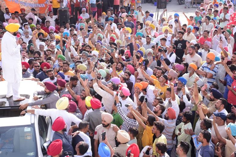 ਮੁੱਖ ਮੰਤਰੀ ਮਾਨ ਸ਼ੁੱਕਰਵਾਰ ਨੂੰ ਸੰਗਰੂਰ ਲੋਕ ਸਭਾ ਜ਼ਿਮਨੀ ਚੋਣ ਲਈ ਆਮ ਆਦਮੀ ਪਾਰਟੀ (ਆਪ) ਦੇ ਉਮੀਦਵਾਰ ਗੁਰਮੇਲ ਸਿੰਘ ਘਰਾਚੋਂ ਦੇ ਹੱਕ ਵਿੱਚ ਪ੍ਰਚਾਰ ਕਰਨ ਲਈ ਵਿਧਾਨ ਸਭਾ ਹਲਕਾ ਦਿੜ੍ਹਬਾ ਅਤੇ ਸੁਨਾਮ ’ਚ ਆਏ ਸਨ ਅਤੇ ਉਨ੍ਹਾਂ ਨੇ ਦਿੜ੍ਹਬਾ, ਖਨੌਰੀ, ਲਹਿਰਾ, ਝਾਂਜਲੀ, ਜਖੇਪਾਲ, ਚੀਮਾ, ਲੌਗੋਂਵਾਲ ਅਤੇ ਸੁਨਾਮ ਵਿੱਚ ‘ਰੋਡ ਸ਼ੋਅ’ ਕਰਕੇ ਵੋਟਰਾਂ ਨੂੰ ਗੁਰਮੇਲ ਸਿੰਘ ਘਰਾਚੋਂ ਨੂੰ ਭਾਰੀ ਬਹੁਮਤ ਨਾਲ ਜਿਤਾਉਣ ਦੀ ਅਪੀਲ ਕੀਤੀ।