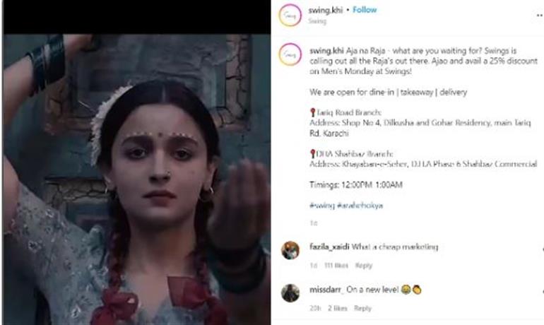ਸੰਜੇ ਲੀਲਾ ਭੰਸਾਲੀ ਵੱਲੋਂ ਨਿਰਦੇਸ਼ਿਤ ਆਲੀਆ ਭੱਟ ਸਟਾਰਰ ਫਿਲਮ 'ਗੰਗੂਬਾਈ ਕਾਠੀਆਵਾੜੀ' ਅਭਿਨੇਤਰੀ ਦੇ ਕਰੀਅਰ ਦੀ ਸਭ ਤੋਂ ਸਫਲ ਫਿਲਮਾਂ ਵਿੱਚੋਂ ਇੱਕ ਹੈ। ਇਸ ਦੇ ਲਈ ਆਲੀਆ ਨੂੰ ਨਾ ਸਿਰਫ ਪ੍ਰਸ਼ੰਸਾ ਮਿਲੀ, ਸਗੋਂ 'ਗੰਗੂਬਾਈ ਕਾਠੀਆਵਾੜੀ' ਨੇ ਵੀ ਬਾਕਸ ਆਫਿਸ 'ਤੇ ਖੂਬ ਕਮਾਈ ਕੀਤੀ ਸੀ। ਫਿਲਮ ਵਿੱਚ ਗੰਗੂਬਾਈ ਨਾਮ ਦੀ ਇੱਕ ਵੇਸਵਾ ਦੇ ਜੀਵਨ ਦੇ ਸੰਘਰਸ਼ ਨੂੰ ਦਿਖਾਇਆ ਗਿਆ ਸੀ, ਜਿਸਨੂੰ ਪਰਦੇ ਉੱਤੇ ਆਲੀਆ ਭੱਟ ਨੇ ਨਿਭਾਇਆ ਸੀ। ਫਿਲਮ 'ਚ ਕਈ ਅਜਿਹੇ ਸੀਨ ਸਨ, ਜਿਸ ਨੂੰ ਦੇਖ ਕੇ ਦਰਸ਼ਕਾਂ ਦੇ ਰੌਂਗਟੇ ਖੜ੍ਹੇ ਹੋ ਗਏ ਪਰ ਇਨ੍ਹਾਂ ਸਾਰੇ ਸੀਨਜ਼ ਵਿਚਾਲੇ ਇਸ ਫਿਲਮ ਦੀ ਸ਼ੁਰੂਆਤ 'ਚ ਇਕ ਸੀਨ ਸੀ ਜਿਸ 'ਚ ਆਲੀਆ ਕੋਠੇ ਦੇ ਬਾਹਰ ਖੜ੍ਹੀ ਹੋ ਕੇ ਗਾਹਕ ਨੂੰ ਇਸ਼ਾਰਿਆਂ ਨਾਲ ਬੁਲਾਉਂਦੀ ਹੈ। ਆਲੀਆ ਦਾ ਇਹ ਸੀਨ ਫਿਲਮ ਦੇ ਬਿਹਤਰੀਨ ਸੀਨਜ਼ 'ਚੋਂ ਇਕ ਹੈ। ਹੁਣ ਆਲੀਆ ਦੇ ਇਸ ਸੀਨ ਦਾ ਇਸਤੇਮਾਲ ਕਰਦੇ ਹੋਏ ਪਾਕਿਸਤਾਨੀ ਰੈਸਟੋਰੈਂਟ ਨੇ ਅਜਿਹੀ ਮਾਰਕੀਟਿੰਗ ਰਣਨੀਤੀ ਅਪਣਾਈ ਹੈ, ਜਿਸ ਨੂੰ ਦੇਖ ਕੇ ਲੋਕ ਗੁੱਸੇ 'ਚ ਹਨ।