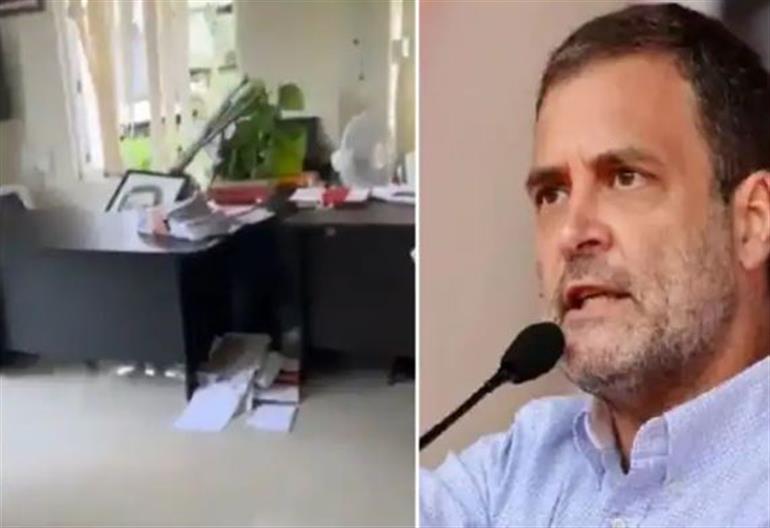ਨਵੀਂ ਦਿੱਲੀ : ਕੇਰਲ ਦੇ ਵਾਇਨਾਡ ਵਿੱਚ ਕਾਂਗਰਸੀ ਆਗੂ ਰਾਹੁਲ ਗਾਂਧੀ ਦੇ ਦਫ਼ਤਰ ਵਿੱਚ ਭੰਨਤੋੜ ਕੀਤੀ ਗਈ ਹੈ। ਇੰਡੀਅਨ ਯੂਥ ਕਾਂਗਰਸ ਨੇ ਇੱਕ ਟਵੀਟ ਵਿੱਚ ਦੋਸ਼ ਲਗਾਇਆ ਹੈ ਕਿ SFI ਦੇ ਝੰਡੇ ਫੜੇ ਕੁਝ ਗੁੰਡਿਆਂ ਨੇ ਰਾਹੁਲ ਗਾਂਧੀ ਦੇ ਵਾਇਨਾਡ ਦਫਤਰ ਦੀ ਕੰਧ 'ਤੇ ਚੜ੍ਹ ਕੇ ਦਫਤਰ ਦੀ ਭੰਨਤੋੜ ਕੀਤੀ। ਮਾਮਲੇ 'ਚ ਪੁਲਿਸ ਨੇ ਤੋੜਫੋੜ ਦੀ ਪੁਸ਼ਟੀ ਕਰਦੇ ਹੋਏ ਜਾਂਚ ਦੀ ਗੱਲ ਵੀ ਕਹੀ ਹੈ।