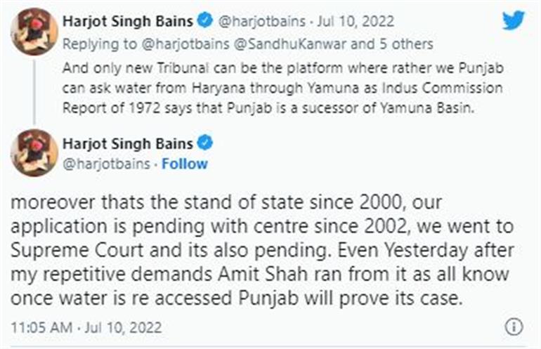 ਮੋਹਾਲੀ : ਪੰਜਾਬ ਸਰਕਾਰ ਨੇ ਸ਼ਨੀਵਾਰ ਨੂੰ ਸੂਬੇ ਵਿੱਚ ਦਰਿਆਈ ਪਾਣੀ ਦੀ ਸਥਿਤੀ ਦੇ ਮੁਲਾਂਕਣ ਲਈ ਇੱਕ ਨਵਾਂ ਜਲ ਟ੍ਰਿਬਿਊਨਲ ਸਥਾਪਤ ਕਰਨ ਲਈ ਜ਼ੋਰਦਾਰ ਅਪੀਲ ਕੀਤੀ।ਪੰਜਾਬ ਦੇ ਕੈਬਨਿਟ ਮੰਤਰੀ ਹਰਜੋਤ ਸਿੰਘ ਬੈਂਸ ਨੇ ਸ਼ਨੀਵਾਰ ਨੂੰ ਇੱਥੇ ਉੱਤਰੀ ਜ਼ੋਨਲ ਕੌਂਸਲ ਦੀ ਮੀਟਿੰਗ ਦੌਰਾਨ ਸੂਬੇ ਦਾ ਪੱਖ ਰੱਖਦਿਆਂ ਸਤਲੁਜ-ਯਮੁਨਾ ਲਿੰਕ ਨਹਿਰ ਦੇ ਮੁੱਦੇ ਦਾ ਵਿਰੋਧ ਕਰਦਿਆਂ ਕਿਹਾ ਕਿ ਪਾਣੀ ਦੀ ਬੂੰਦ ਦੂਜੇ ਰਾਜਾਂ ਨਾਲ ਸਾਂਝੀ ਕਰਨ ਲਈ ਪੰਜਾਬ ਕੋਲ ਇੱਕ ਵੀ ਨਹਿਰ ਨਹੀਂ ਹੈ।ਉਨ੍ਹਾਂ ਕਿਹਾ “ਸੂਬੇ ਵਿੱਚ ਧਰਤੀ ਹੇਠਲੇ ਪਾਣੀ ਦਾ ਪੱਧਰ ਪਹਿਲਾਂ ਹੀ ਹੇਠਾਂ ਜਾ ਰਿਹਾ ਹੈ ਅਤੇ ਜ਼ਿਆਦਾਤਰ ਬਲਾਕ ਡਾਰਕ ਜ਼ੋਨ ਵਿੱਚ ਹਨ। ਅਤੀਤ ਵਿੱਚ ਟ੍ਰਿਬਿਊਨਲ ਵੱਲੋਂ ਦਰਿਆਈ ਪਾਣੀ ਦੀ ਵੰਡ ਦਾ ਮੁਲਾਂਕਣ ਮੌਜੂਦਾ ਸਥਿਤੀ ਵਿੱਚ ਪੁਰਾਣਾ ਹੈ।ਬੈਂਸ ਨੇ ਰਾਜ ਦੀ ਤਰਫੋਂ, 1972 ਦੀ ਸਿੰਧੂ ਕਮਿਸ਼ਨ ਦੀ ਰਿਪੋਰਟ ਦਾ ਹਵਾਲਾ ਦਿੰਦੇ ਹੋਏ ਹਰਿਆਣਾ ਤੋਂ ਯਮੁਨਾ ਦੇ ਪਾਣੀ ਦੀ ਮੰਗ ਕੀਤੀ ਅਤੇ ਕਿਹਾ ਕਿ ਰਾਜ ਵਿੱਚ ਪਾਣੀ ਦੀ ਮੌਜੂਦਾ ਸਥਿਤੀ ਦਾ ਮੁਲਾਂਕਣ ਕਰਨ ਲਈ ਇੱਕ ਨਵੇਂ ਟ੍ਰਿਬਿਊਨਲ ਦਾ ਗਠਨ ਕੀਤਾ ਜਾਣਾ ਚਾਹੀਦਾ ਹੈ।ਹਰਜੋਤ ਬੈਂਸ ਨੇ ਕਿਹਾ, “ਇਹ ਤਸਵੀਰ ਨੂੰ ਸਾਫ਼ ਕਰੇਗਾ ਅਤੇ ਰਾਜ ਵਿੱਚ ਪਾਣੀ ਦੀ ਸਹੀ ਵਰਤੋਂ ਦੀ ਆਗਿਆ ਦੇਵੇਗਾ। ਇਹ ਯਕੀਨੀ ਬਣਾਉਣਾ ਸਮੇਂ ਦੀ ਲੋੜ ਹੈ ਕਿ ਪੰਜਾਬ ਦਾ ਪਾਣੀ SYL ਜਾਂ ਕਿਸੇ ਹੋਰ ਤਰੀਕੇ ਰਾਹੀਂ ਕਿਸੇ ਹੋਰ ਸੂਬੇ ਵੱਲ ਨਾ ਮੋੜਿਆ ਜਾਵੇ।