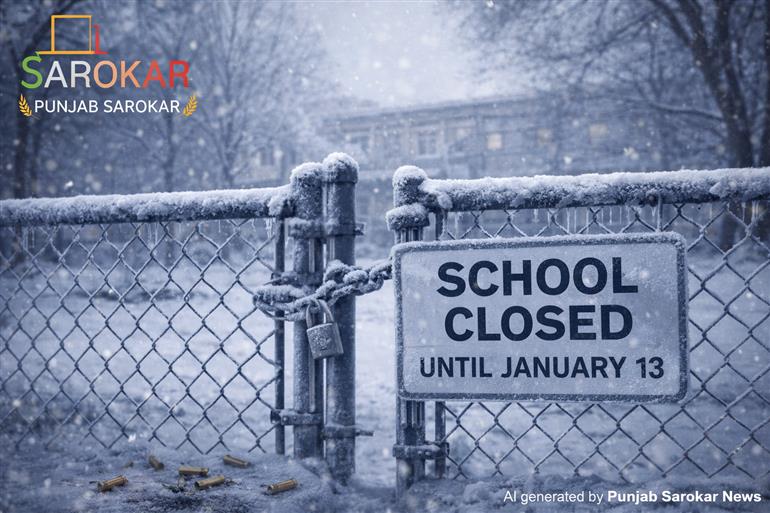 ਪੰਜਾਬ ਵਿੱਚ ਕੜਾਕੇ ਦੀ ਠੰਡ ਦੇ ਮੱਦੇਨਜ਼ਰ ਪੰਜਾਬ ਸਰਕਾਰ ਨੇ ਸਰਕਾਰੀ, ਨਿੱਜੀ ਅਤੇ ਮਾਨਤਾ ਪ੍ਰਾਪਤ ਸਕੂਲਾਂ ਵਿੱਚ ਛੁੱਟੀਆਂ 13 ਜਨਵਰੀ ਤੱਕ ਵਧਾਉਣ ਦਾ ਐਲਾਨ ਕਰ ਦਿੱਤਾ ਹੈ। ਸਕੂਲ ਛੁੱਟੀਆਂ ਵਿੱਚ ਦੂਜੀ ਵਾਰ ਵਾਧਾ ਕੀਤਾ ਗਿਆ ਹੈ। ਜਿਸ ਬਾਰੇ ਜਾਣਕਾਰੀ ਸਿੱਖਿਆ ਮੰਤਰੀ ਹਰਜੋਤ ਬੈਂਸ ਨੇ ਸੋਸ਼ਲ ਮੀਡੀਆ ਤੇ ਇੱਕ ਪੋਸਟ ਪਾ ਕੇ ਦਿੱਤੀ ਹੈ।