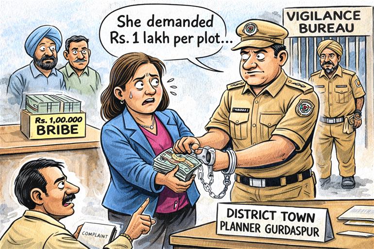ਪੰਜਾਬ ਦੇ ਗੁਰਦਾਸਪੁਰ ਜ਼ਿਲ੍ਹੇ ਵਿੱਚ ਵਿਜੀਲੈਂਸ ਬਿਊਰੋ ਨੇ ਜ਼ਿਲ੍ਹਾ ਟਾਊਨ ਪਲੈਨਰ ਰਿਤਿਕਾ ਅਰੋੜਾ ਨੂੰ 100,000 ਰੁਪਏ ਦੀ ਰਿਸ਼ਵਤ ਲੈਂਦੇ ਹੋਏ ਰੰਗੇ ਹੱਥੀਂ ਗ੍ਰਿਫ਼ਤਾਰ ਕੀਤਾ ਹੈ। ਇਸ ਮਾਮਲੇ ਵਿੱਚ ਪਲਾਟਾਂ ਦੀ ਪ੍ਰਵਾਨਗੀ ਲਈ ਰਿਸ਼ਵਤ ਦੀ ਮੰਗ ਸ਼ਾਮਲ ਸੀ, ਅਤੇ ਇੱਕ ਸ਼ਿਕਾਇਤ ਤੋਂ ਬਾਅਦ, ਵਿਜੀਲੈਂਸ ਨੇ ਜਾਲ ਵਿਛਾ ਕੇ ਕਾਰਵਾਈ ਕੀਤੀ।