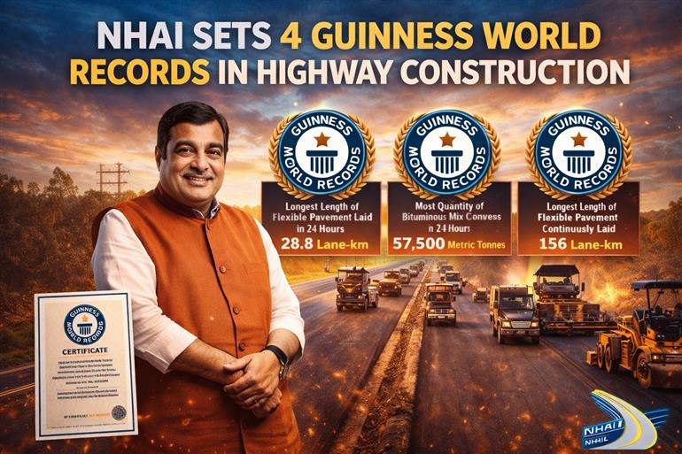 ਸਰਕਾਰੀ ਜਾਣਕਾਰੀ ਅਨੁਸਾਰ, 6 ਜਨਵਰੀ, 2026 ਨੂੰ, NHAI ਨੇ 24 ਘੰਟਿਆਂ ਵਿੱਚ ਸਭ ਤੋਂ ਲੰਬੇ ਨਿਰੰਤਰ ਬਿਟੂਮਿਨਸ ਕੰਕਰੀਟ ਵਿਛਾਉਣ ਦਾ ਰਿਕਾਰਡ ਕਾਇਮ ਕੀਤਾ। ਇਸ ਸਮੇਂ ਦੌਰਾਨ, ਤਿੰਨ ਲੇਨ ਚੌੜੇ 9.63 ਕਿਲੋਮੀਟਰ ਦੇ ਹਿੱਸੇ 'ਤੇ ਕੁੱਲ 28.89 ਲੇਨ-ਕਿਲੋਮੀਟਰ ਸੜਕ ਬਣਾਈ ਗਈ ਸੀ। ਉਸੇ ਦਿਨ ਇੱਕ ਹੋਰ ਵਿਸ਼ਵ ਰਿਕਾਰਡ ਵੀ ਸਥਾਪਤ ਕੀਤਾ ਗਿਆ: 24 ਘੰਟਿਆਂ ਵਿੱਚ 10,655 ਮੀਟ੍ਰਿਕ ਟਨ ਬਿਟੂਮਿਨਸ ਕੰਕਰੀਟ ਵਿਛਾਉਣਾ।