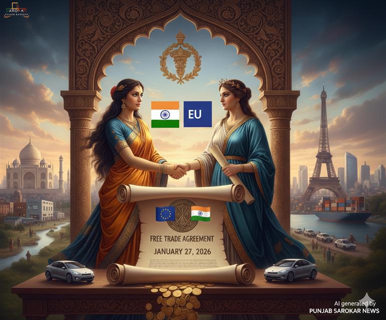 ਗਲੋਬਲ ਵਪਾਰ ਦੇ ਮੈਦਾਨ ਵਿੱਚ ਇੱਕ ਇਤਿਹਾਸਕ ਮੋੜ ਆਉਂਦਾ ਦਿੱਸ ਰਿਹਾ ਹੈ। ਭਾਰਤ ਅਤੇ ਯੂਰਪੀ ਸੰਘ (EU) ਦਰਮਿਆਨ ਲੰਬੇ ਸਮੇਂ ਤੋਂ ਚੱਲ ਰਹੀ ਮੁਕਤ ਵਪਾਰ ਸਮਝੌਤਾ (FTA) ਗੱਲਬਾਤ ਹੁਣ ਅੰਤਿਮ ਦੌਰ ਵਿੱਚ ਦਾਖ਼ਲ ਹੋ ਚੁੱਕੀ ਹੈ। 27 ਜਨਵਰੀ 2026 ਨੂੰ ਇਸ ਵਿਸ਼ਾਲ ਸਮਝੌਤੇ ਬਾਰੇ ਅਧਿਕਾਰਤ ਐਲਾਨ ਹੋਣ ਦੀ ਪੂਰੀ ਸੰਭਾਵਨਾ ਹੈ। 18 ਸਾਲਾਂ ਦੀ ਲੰਬੀ ਗੱਲਬਾਤ ਤੋਂ ਬਾਅਦ ਤਿਆਰ ਹੋ ਰਿਹਾ ਇਹ ਸਮਝੌਤਾ ਕੂਟਨੀਤਿਕ ਹਲਕਿਆਂ ਵਿੱਚ “ਸਾਰੇ ਸੌਦਿਆਂ ਦੀ ਮਾਂ” (Mother of All Deals) ਕਿਹਾ ਜਾ ਰਿਹਾ ਹੈ।