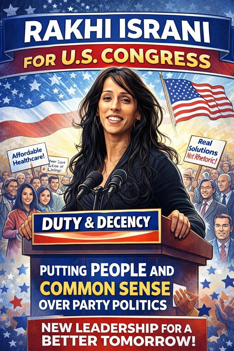 ਭਾਰਤੀ ਮੂਲ ਦੀ ਅਮਰੀਕੀ ਨੇਤਾ Rakhi Israni ਨੇ ਅਮਰੀਕੀ ਕਾਂਗਰਸ ਲਈ ਆਪਣੀ ਉਮੀਦਵਾਰੀ ਦਾ ਅਧਿਕਾਰਕ ਐਲਾਨ ਕਰਕੇ ਅਮਰੀਕੀ ਰਾਜਨੀਤੀ ਵਿੱਚ ਨਵੀਂ ਚਰਚਾ ਛੇੜ ਦਿੱਤੀ ਹੈ। ਉਨ੍ਹਾਂ ਕਿਹਾ ਕਿ ਅੱਜ ਦੀ ਰਾਜਨੀਤੀ ਨੂੰ “ਫਰਜ਼ ਅਤੇ ਸ਼ਿਸ਼ਟਾਚਾਰ” ਵੱਲ ਵਾਪਸ ਲਿਜਾਣ ਦੀ ਲੋੜ ਹੈ, ਕਿਉਂਕਿ ਆਮ ਲੋਕ ਮਹਿੰਗਾਈ, ਸਿਹਤ ਸੰਭਾਲ ਅਤੇ ਜੀਵਨ ਯਾਪਨ ਨਾਲ ਜੁੜੇ ਫੈਸਲਿਆਂ ਤੋਂ ਆਪਣੇ ਆਪ ਨੂੰ ਕੱਟਿਆ ਹੋਇਆ ਮਹਿਸੂਸ ਕਰ ਰਹੇ ਹਨ।
