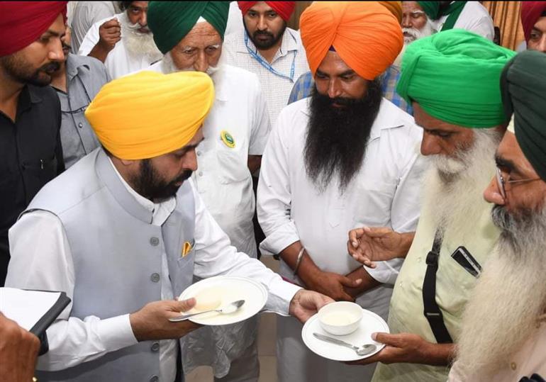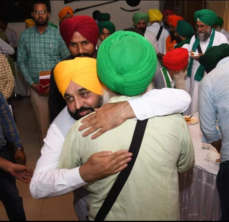 ਚੰਡੀਗੜ੍ਹ : ਸੀਐਮ ਭਗਵੰਤ ਮਾਨ ਨੇ ਕਿਸਾਨਾਂ ਦੀ ਮੰਗਾਂ ਮੰਨ ਲਈਆਂ ਹਨ। ਇਸ ਦੌਰਾਨ ਉਹ ਕਿਸਾਨ ਆਗੂਆਂ ਨੂੰ ਗਲੇ ਲਾਉਂਦੇ ਤੇ ਉਨ੍ਹਾਂ ਨਾਲ ਖਾਣਾ ਖਾਂਦੇ ਨਜ਼ਰ ਆਏ ਸੀ।