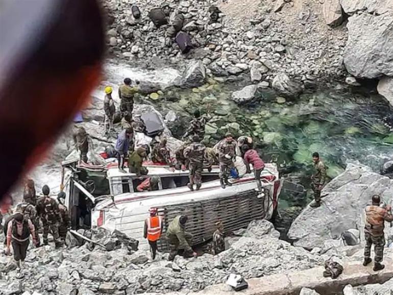 ਨਵੀਂ ਦਿੱਲੀ : ਲੱਦਾਖ ਖੇਤਰ 'ਚ ਵੀਰਵਾਰ ਨੂੰ 26 ਸੈਨਿਕਾਂ ਨੂੰ ਲੈ ਕੇ ਜਾ ਰਿਹਾ ਇੱਕ ਵਾਹਨ ਸ਼ਿਯੋਕ ਨਦੀ 'ਚ ਡਿੱਗ ਗਿਆ। ਇਸ ਹਾਦਸੇ 'ਚ 7 ਜਵਾਨਾਂ ਦੀ ਮੌਤ ਹੋ ਗਈ। 26 ਜਵਾਨਾਂ ਦੀ ਟੀਮ ਪਰਤਾਪੁਰ ਦੇ ਟਰਾਂਜ਼ਿਟ ਕੈਂਪ ਤੋਂ ਸਬ-ਸੈਕਟਰ ਹਨੀਫ ਦੇ ਅੱਗੇ ਵਾਲੇ ਖੇਤਰ ਵੱਲ ਜਾ ਰਹੀ ਸੀ। ਰਾਤ ਕਰੀਬ 9 ਵਜੇ ਥੌਇਸ ਤੋਂ ਕਰੀਬ 25 ਕਿਲੋਮੀਟਰ ਦੂਰ ਗੱਡੀ ਸੜਕ ਤੋਂ ਫਿਸਲ ਕੇ ਸ਼ਿਓਕ ਨਦੀ ਵਿੱਚ ਜਾ ਡਿੱਗੀ। ਹਾਸਲ ਜਾਣਕਾਰੀ ਮੁਤਾਬਕ ਗੱਡੀ ਕਰੀਬ 50-60 ਫੁੱਟ ਹੇਠ ਡਿੱਗੀ। ਸਾਰੇ 26 ਜਵਾਨਾਂ ਨੂੰ ਪਰਤਾਪੁਰ ਦੇ 403 ਫੀਲਡ ਹਸਪਤਾਲ ਲਿਜਾਇਆ ਗਿਆ, ਜਿਸ ਤੋਂ ਬਾਅਦ ਸਰਜੀਕਲ ਟੀਮਾਂ ਨੂੰ ਲੇਹ ਤੋਂ ਪਰਤਾਪੁਰ ਭੇਜਿਆ ਗਿਆ। ਹੁਣ ਤੱਕ 26 ਚੋਂ 7 ਨੂੰ ਮ੍ਰਿਤਕ ਐਲਾਨ ਦਿੱਤਾ ਗਿਆ ਹੈ। ਹੋਰ ਜਵਾਨਾਂ ਨੂੰ ਵੀ ਗੰਭੀਰ ਸੱਟਾਂ ਲੱਗੀਆਂ ਹਨ।