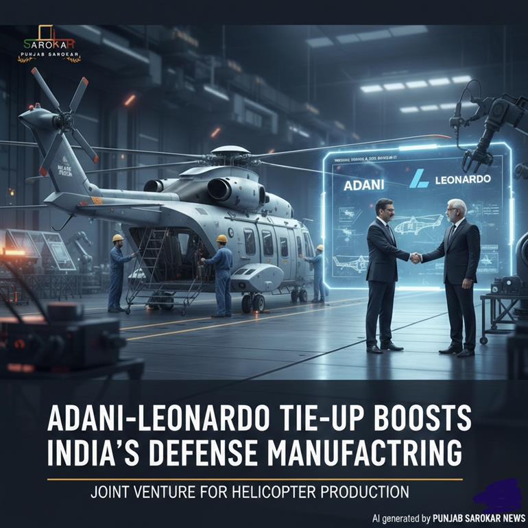 ਭਾਰਤ ਦੀ ਰੱਖਿਆ ਉਤਪਾਦਨ ਸਮਰੱਥਾ ਨੂੰ ਮਜ਼ਬੂਤ ਕਰਨ ਦੀ ਦਿਸ਼ਾ ਵਿੱਚ ਇੱਕ ਅਹਿਮ ਕਦਮ ਪੁੱਟਦਿਆਂ, 'ਅਡਾਨੀ ਡਿਫੈਂਸ ਐਂਡ ਐਰੋਸਪੇਸ' ਅਤੇ ਇਟਲੀ ਦੀ ਪ੍ਰਮੁੱਖ ਕੰਪਨੀ 'ਲਿਓਨਾਰਡੋ' (Leonardo) ਵਿਚਕਾਰ ਇੱਕ ਰਣਨੀਤਕ ਸਾਂਝੇਦਾਰੀ ਹੋਈ ਹੈ। ਇਸ ਸਹਿਯੋਗ ਦਾ ਮੁੱਖ ਉਦੇਸ਼ ਭਾਰਤ ਵਿੱਚ ਇੱਕ ਏਕੀਕ੍ਰਿਤ (Integrated) ਹੈਲੀਕਾਪਟਰ ਉਤਪਾਦਨ ਕੇਂਦਰ ਸਥਾਪਤ ਕਰਨਾ ਹੈ, ਤਾਂ ਜੋ ਭਾਰਤੀ ਹਥਿਆਰਬੰਦ ਸੈਨਾਵਾਂ ਦੀਆਂ ਵਧਦੀਆਂ ਲੋੜਾਂ ਨੂੰ ਦੇਸੀ ਪੱਧਰ 'ਤੇ ਪੂਰਾ ਕੀਤਾ ਜਾ ਸਕੇ।