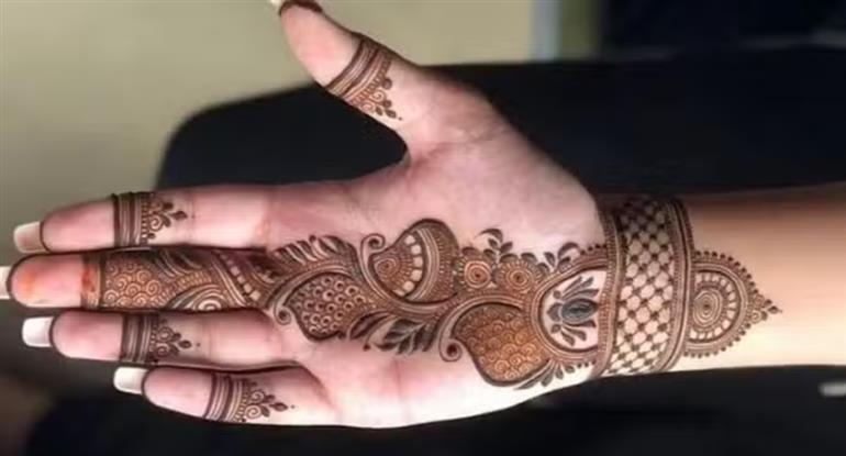 ਜੇਕਰ ਤੁਸੀਂ ਮਹਿੰਦੀ ਦਾ ਥੋੜ੍ਹਾ ਵੱਖਰਾ ਸਟਾਈਲ ਲਗਾਉਣਾ ਚਾਹੁੰਦੇ ਹੋ ਤਾਂ ਅਜਿਹਾ ਡਿਜ਼ਾਈਨ ਚੁਣੋ। ਅਜਿਹੀ ਮਹਿੰਦੀ ਹੱਥਾਂ ਨੂੰ ਭਰਦੀ ਹੈ ਅਤੇ ਸੁੰਦਰ ਵੀ ਲੱਗਦੀ ਹੈ। ਇਸ ਮਹਿੰਦੀ ਨੂੰ ਲਗਾਉਣ ਤੋਂ ਬਾਅਦ ਆਪਣੇ ਹੱਥਾਂ 'ਚ ਚੂੜੀਆਂ ਜ਼ਰੂਰ ਪਾਓ।