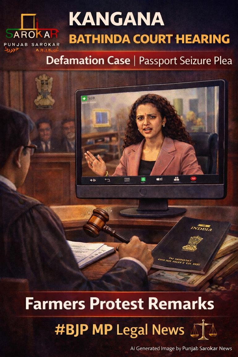 ਭਾਜਪਾ ਸੰਸਦ ਮੈਂਬਰ ਅਤੇ ਫਿਲਮ ਅਦਾਕਾਰਾ ਕੰਗਨਾ ਰਣੌਤ ਅੱਜ ਬਠਿੰਡਾ ਦੀ ਇੱਕ ਅਦਾਲਤ ਵਿੱਚ ਮਾਣਹਾਨੀ ਦੇ ਮਾਮਲੇ ਸਬੰਧੀ ਵੀਡੀਓ ਕਾਨਫਰੰਸਿੰਗ ਰਾਹੀਂ ਪੇਸ਼ ਹੋਵੇਗੀ। ਅਦਾਲਤ ਵੱਲੋਂ ਅੱਜ ਉਸ ਅਰਜ਼ੀ ’ਤੇ ਸੁਣਵਾਈ ਕੀਤੀ ਜਾਵੇਗੀ, ਜਿਸ ਵਿੱਚ ਮਾਮਲੇ ਦੀ ਕਾਰਵਾਈ ਦੌਰਾਨ ਪਾਸਪੋਰਟ ਜ਼ਬਤ ਕਰਨ ਦੀ ਮੰਗ ਕੀਤੀ ਗਈ ਹੈ।