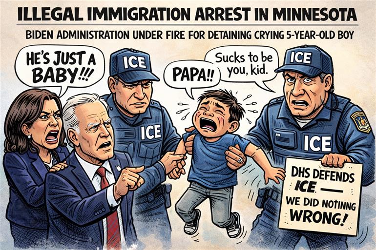 ਅਮਰੀਕਾ ਦੇ ਮਿਨੇਸੋਟਾ ਰਾਜ ਵਿੱਚ (ICE) ਦੀ ਇੱਕ ਕਾਰਵਾਈ ਦੌਰਾਨ ਪੰਜ ਸਾਲ ਦੇ ਬੱਚੇ ਨੂੰ ਹਿਰਾਸਤ ਵਿਚ ਲੈ ਲਿਆ ਗਿਆ। ਵੇਰਵਿਆਂ ਅਨੁਸਾਰ ਉਸ ਦੇ ਪਿਤਾ 'ਤੇ ਇਮੀਗ੍ਰੇਸ਼ਨ ਕਾਨੂੰਨ ਕਾਰਵਾਈ ਕੀਤੀ ਗਈ ਸੀ ਅਤੇ ਉਸ ਦੇ ਨਾਲ਼ ਬੱਚੇ ਨੂੰ ਵੀ ਅਸਥਾਈ ਤੌਰ ’ਤੇ ਹਿਰਾਸਤ ਵਿੱਚ ਜਾਣਾ ਸਿਆਸੀ ਅਤੇ ਸਮਾਜਿਕ ਪੱਧਰ ’ਤੇ ਵੱਡੀ ਚਰਚਾ ਦਾ ਵਿਸ਼ਾ ਬਣ ਗਿਆ ਹੈ। ਵਿਰੋਧੀ ਨੇਤਾਵਾਂ ਅਤੇ ਮਨੁੱਖੀ ਅਧਿਕਾਰ ਸੰਗਠਨਾਂ ਨੇ ਇਸ ਘਟਨਾ ’ਤੇ ਸਵਾਲ ਉਠਾਏ ਹਨ, ਜਦਕਿ (DHS) ਨੇ ਦਾਅਵਾ ਕੀਤਾ ਹੈ ਕਿ ਸਾਰੀ ਕਾਰਵਾਈ ਨਿਯਮਾਂ ਅਨੁਸਾਰ ਕੀਤੀ ਗਈ।