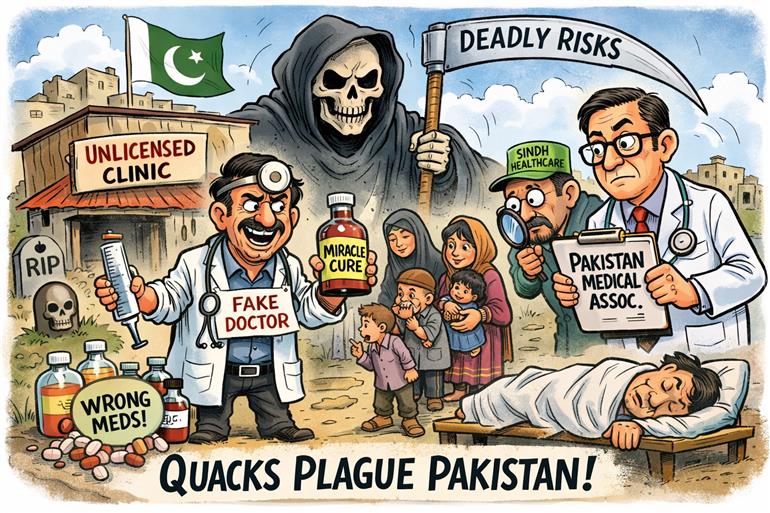 ਪਾਕਿਸਤਾਨ ਵਿੱਚ ਇੱਕ ਗੰਭੀਰ ਅਤੇ ਚਿੰਤਾਜਨਕ ਸਿਹਤ ਸੰਕਟ ਸਾਹਮਣੇ ਆਇਆ ਹੈ। ਸਰਕਾਰੀ ਅਤੇ ਅਰਧ-ਸਰਕਾਰੀ ਅੰਕੜਿਆਂ ਮੁਤਾਬਕ ਦੇਸ਼ ਭਰ ਵਿੱਚ 6 ਲੱਖ ਤੋਂ ਵੱਧ ਨਕਲੀ ਜਾਂ ਗੈਰ-ਲਾਇਸੈਂਸ ਡਾਕਟਰ ਸਰਗਰਮ ਹਨ, ਜੋ ਬਿਨਾਂ ਮਾਨਤਾ ਪ੍ਰਾਪਤ ਡਿਗਰੀਆਂ ਅਤੇ ਰਜਿਸਟ੍ਰੇਸ਼ਨ ਦੇ ਮਰੀਜ਼ਾਂ ਦਾ ਇਲਾਜ ਕਰ ਰਹੇ ਹਨ। ਇਹ ਖੁਲਾਸਾ Pakistan Medical Association ਅਤੇ Sindh Healthcare Commission ਦੀਆਂ ਰਿਪੋਰਟਾਂ ਵਿੱਚ ਕੀਤਾ ਗਿਆ ਹੈ।