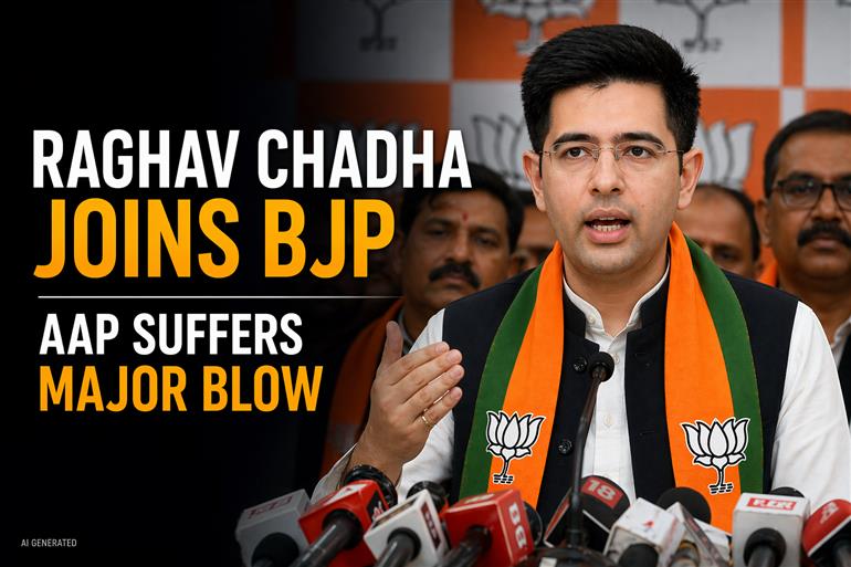ਨਵੀਂ ਦਿੱਲੀ, 24 ਅਪ੍ਰੈਲ 2026: ਭਾਰਤੀ ਰਾਜਨੀਤੀ ਵਿੱਚ ਇੱਕ ਵੱਡਾ ਭੂਚਾਲ ਆ ਗਿਆ ਹੈ। ਆਮ ਆਦਮੀ ਪਾਰਟੀ (AAP) ਦੇ ਰਾਜ ਸਭਾ ਮੈਂਬਰ ਅਤੇ ਪ੍ਰਮੁੱਖ ਚਿਹਰੇ ਰਾਘਵ ਚੱਢਾ ਨੇ ਆਪਣੀ ਪਾਰਟੀ ਤੋਂ ਇਸਤੀਫ਼ਾ ਦੇ ਕੇ ਭਾਰਤੀ ਜਨਤਾ ਪਾਰਟੀ (BJP) ਵਿੱਚ ਸ਼ਾਮਲ ਹੋਣ ਦਾ ਐਲਾਨ ਕੀਤਾ ਹੈ। ਉਨ੍ਹਾਂ ਨਾਲ 6 ਹੋਰ ਆਪ ਰਾਜ ਸਭਾ ਮੈਂਬਰ ਵੀ ਬੀਜੇਪੀ ਵਿੱਚ ਮਿਲ ਗਏ ਹਨ।