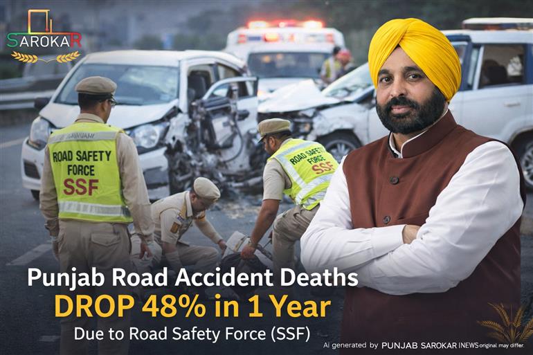 ਜਨਤਕ ਸੁਰੱਖਿਆ ਦੇ ਖੇਤਰ ਵਿੱਚ ਇੱਕ ਇਤਿਹਾਸਕ ਕਾਮਯਾਬੀ ਦਰਜ ਕਰਦਿਆਂ ਪੰਜਾਬ ਸਰਕਾਰ ਨੇ ਆਪਣੀ ਸਮਰਪਿਤ ਸੜਕ ਸੁਰੱਖਿਆ ਫੋਰਸ (SSF) ਦੀ ਤਾਇਨਾਤੀ ਦੇ ਇੱਕ ਸਾਲ ਅੰਦਰ ਸੜਕ ਹਾਦਸਿਆਂ ਵਿੱਚ ਹੋਣ ਵਾਲੀਆਂ ਮੌਤਾਂ ਵਿੱਚ 48% ਦੀ ਕਮੀ ਦਰਜ ਕੀਤੀ ਹੈ।