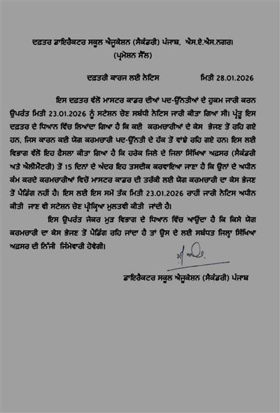 Breaking :เจฎเจพเจธเจŸเจฐ เจ•เจพเจกเจฐ เจชเจฆ-เจ‰เฉฑเจจเจคเฉ€เจ†เจ‚ 'เจคเฉ‡ เจธเจŸเฉ‡เจธเจผเจจ เจšเฉ‹เจฃ เจ…เจฒเจพเจŸเจฎเฉˆเจ‚เจŸ เจฎเฉเจฒเจคเจตเฉ€, เจ•เจˆ เฉ›เจฟเจฒเฉเจนเจฟเจ†เจ‚ เจจเฉ‡ เจนเจพเจฒเฉ‡ เจ•เฉ‡เจธ เจจเจนเฉ€เจ‚ เจญเฉ‡เจœเฉ‡ - เจธเจฟเจ–เจฟเจ† เจตเจฟเจญเจพเจ— เจจเฉ‡ 15 เฉ›เจฟเจฒเฉเจนเจพ เจธเจฟเฉฑเจ–เจฟเจ† เจ…เจซเจธเจฐเจพเจ‚ เจคเฉ‹เจ‚ เจตเฉ‡เจฐเจตเฉ‡ เจฎเฉฐเจ—เฉ‡