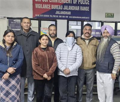 ਪੰਜਾਬ ਵਿਜੀਲੈਂਸ ਬਿਊਰੋ ਨੇ ਡਾਇਰੈਕਟਰ ਲੈਂਡ ਰਿਕਾਰਡ ਦਫ਼ਤਰ ਦੇ ਠੇਕਾ ਕਰਮਚਾਰੀ ਨੂੰ ਜ਼ਮੀਨ ਦੇ ਰਿਕਾਰਡ ਦੇ ਬਦਲੇ ₹4,000 ਰਿਸ਼ਵਤ ਲੈਂਦਿਆਂ ਰੰਗੇ ਹੱਥੀਂ ਗ੍ਰਿਫ਼ਤਾਰ ਕੀਤਾ।