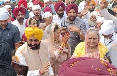 ਮੁੱਖ ਮੰਤਰੀ ਭਗਵੰਤ ਸਿੰਘ ਮਾਨ ਵਿਆਹ ਮਗਰੋਂ ਪਹਿਲੀ ਵਾਰ ਆਪਣੇ ਪਰਿਵਾਰ ਸਣੇ ਪਿੰਡ ਸਤੌਜ ਪੁੱਜੇ