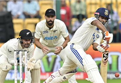 ਸਰਫਰਾਜ਼ ਖਾਨ ਸਿਰਫ 11 ਦੌੜਾਂ ਹੀ ਬਣਾ ਸਕੇ। ਮਿਸ਼ੇਲ ਸੈਂਟਨਰ ਨੇ ਸਰਫਰਾਜ਼ ਖਾਨ ਨੂੰ ਆਪਣਾ ਸ਼ਿਕਾਰ ਬਣਾਇਆ। ਹਾਲਾਂਕਿ ਰਵਿੰਦਰ ਜਡੇਜਾ ਨੇ 38 ਦੌੜਾਂ ਜੋੜੀਆਂ ਪਰ ਮਿਸ਼ੇਲ ਸੈਂਟਨਰ ਦੀ ਗੇਂਦ 'ਤੇ ਪੈਵੇਲੀਅਨ ਪਰਤ ਗਏ। ਰਵੀ ਅਸ਼ਵਿਨ ਨੇ 4 ਦੌੜਾਂ ਬਣਾਈਆਂ। ਵਾਸ਼ਿੰਗਟਨ ਸੁੰਦਰ 18 ਦੌੜਾਂ ਬਣਾ ਕੇ ਨਾਬਾਦ ਪਰਤੇ।