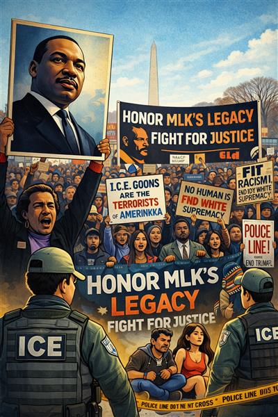 ਵਾਸ਼ਿੰਗਟਨ ਡੀ.ਸੀ. ਵਿੱਚ ਐਮਐਲਕੇ ਦਿਵਸ ਮਾਰਚ ਦੌਰਾਨ ਡਾ. ਮਾਰਟਿਨ ਲੂਥਰ ਕਿੰਗ ਜੂਨੀਅਰ ਦੀ ਵਿਰਾਸਤ ਨੂੰ ਸਨਮਾਨ ਮਿਲਿਆ, ਨਾਲ ਹੀ ਟਰੰਪ ਪ੍ਰਸ਼ਾਸਨ ਦੀਆਂ ਇਮੀਗ੍ਰੇਸ਼ਨ ਨੀਤੀਆਂ ਖ਼ਿਲਾਫ਼ ਵਿਰੋਧ ਵੀ ਹੋਇਆ।